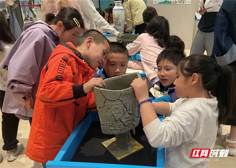 长沙博物馆里,小朋友体验“文物修复”。(图源:长沙博物馆)