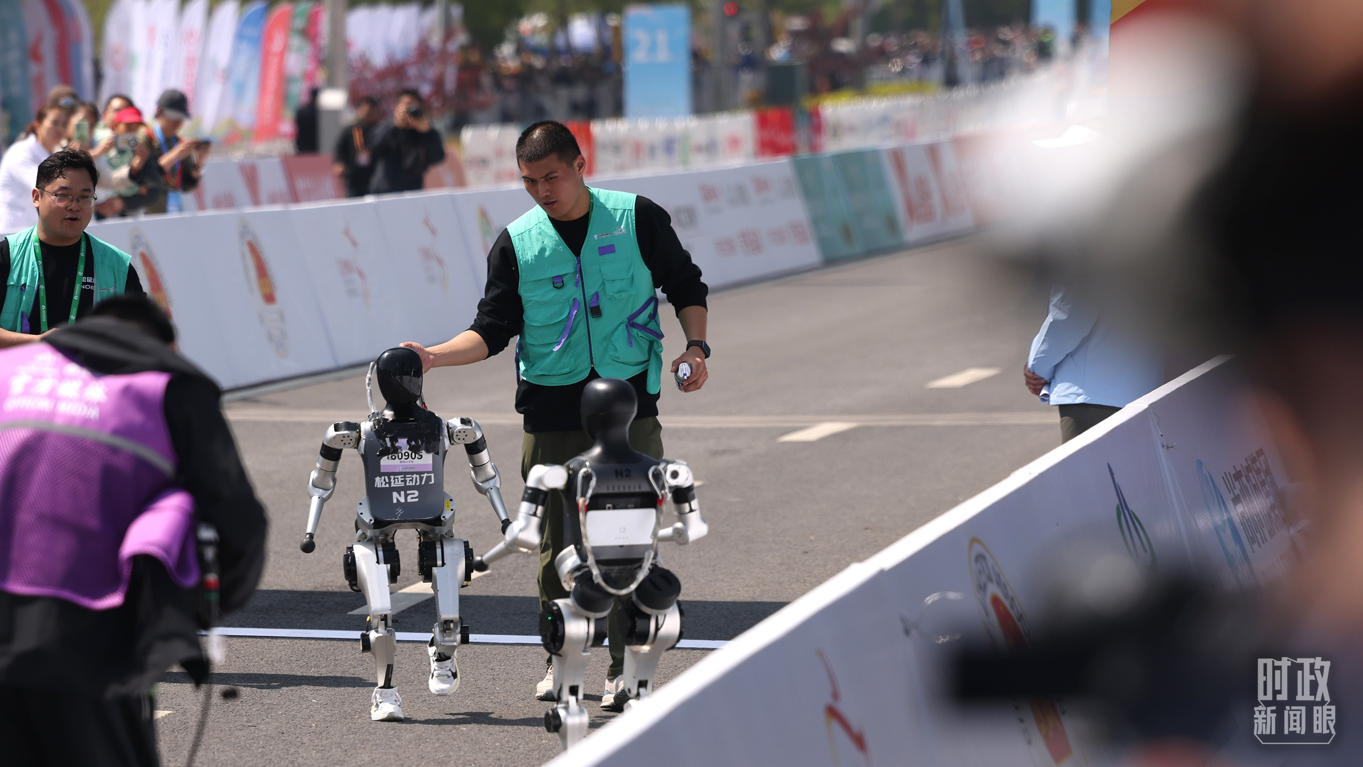 △2025年4月19日,2025北京亦庄人形机器人半程马拉松举行。(视觉中国)