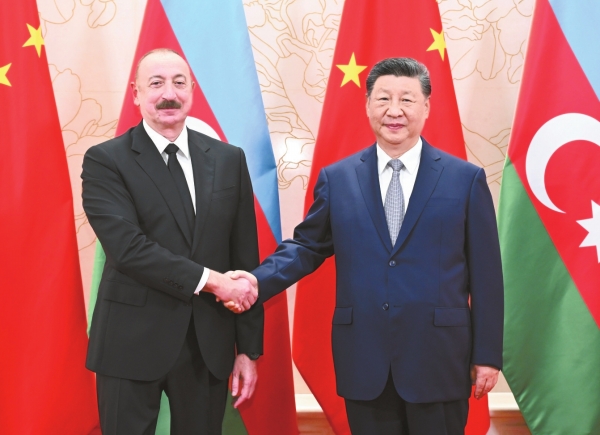 8月31日上午,国家主席习近平在天津迎宾馆会见来华出席2025年上海合作组织峰会和纪念中国人民抗日战争暨世界反法西斯战争胜利80周年活动的阿塞拜疆总统阿利耶夫。新华社 发