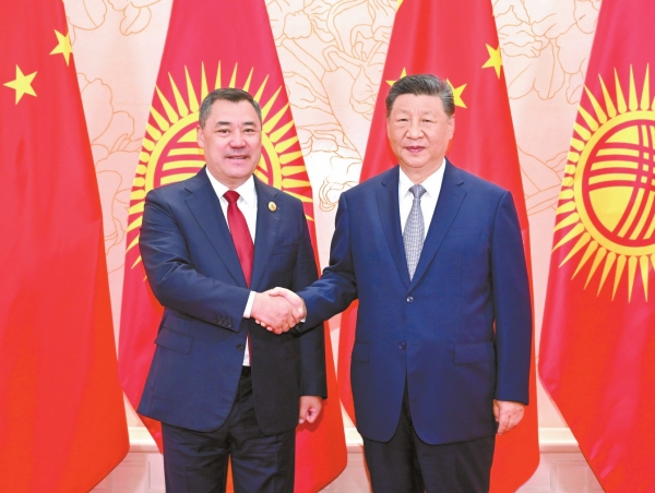 8月31日上午,国家主席习近平在天津迎宾馆会见来华出席2025年上海合作组织峰会和纪念中国人民抗日战争暨世界反法西斯战争胜利80周年活动的吉尔吉斯斯坦总统扎帕罗夫。新华社 发