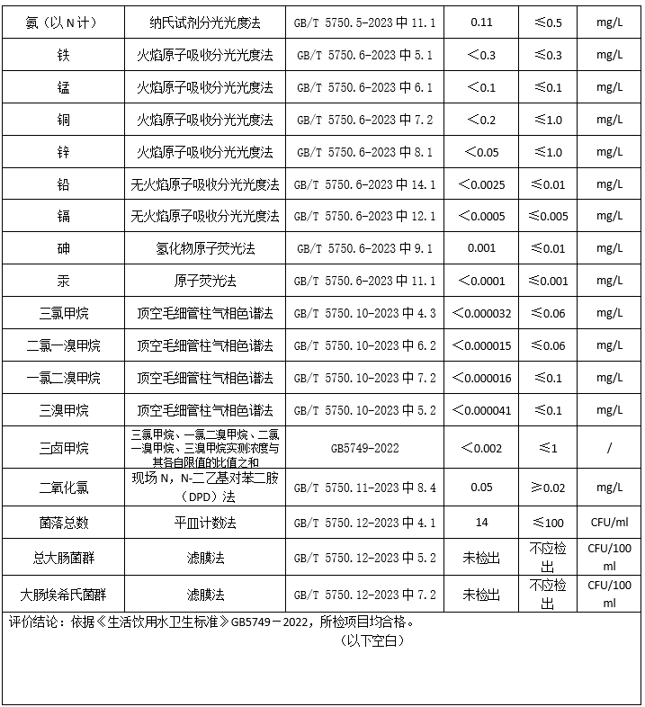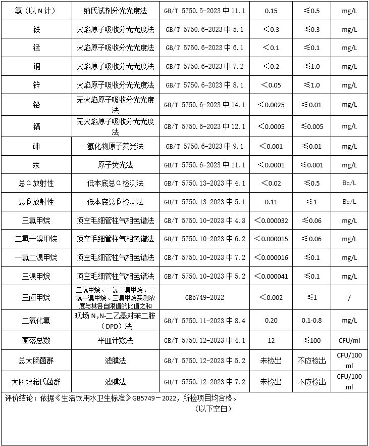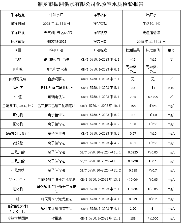 2025年11月湘乡市振湘供水有限公司化验室水质检验报告