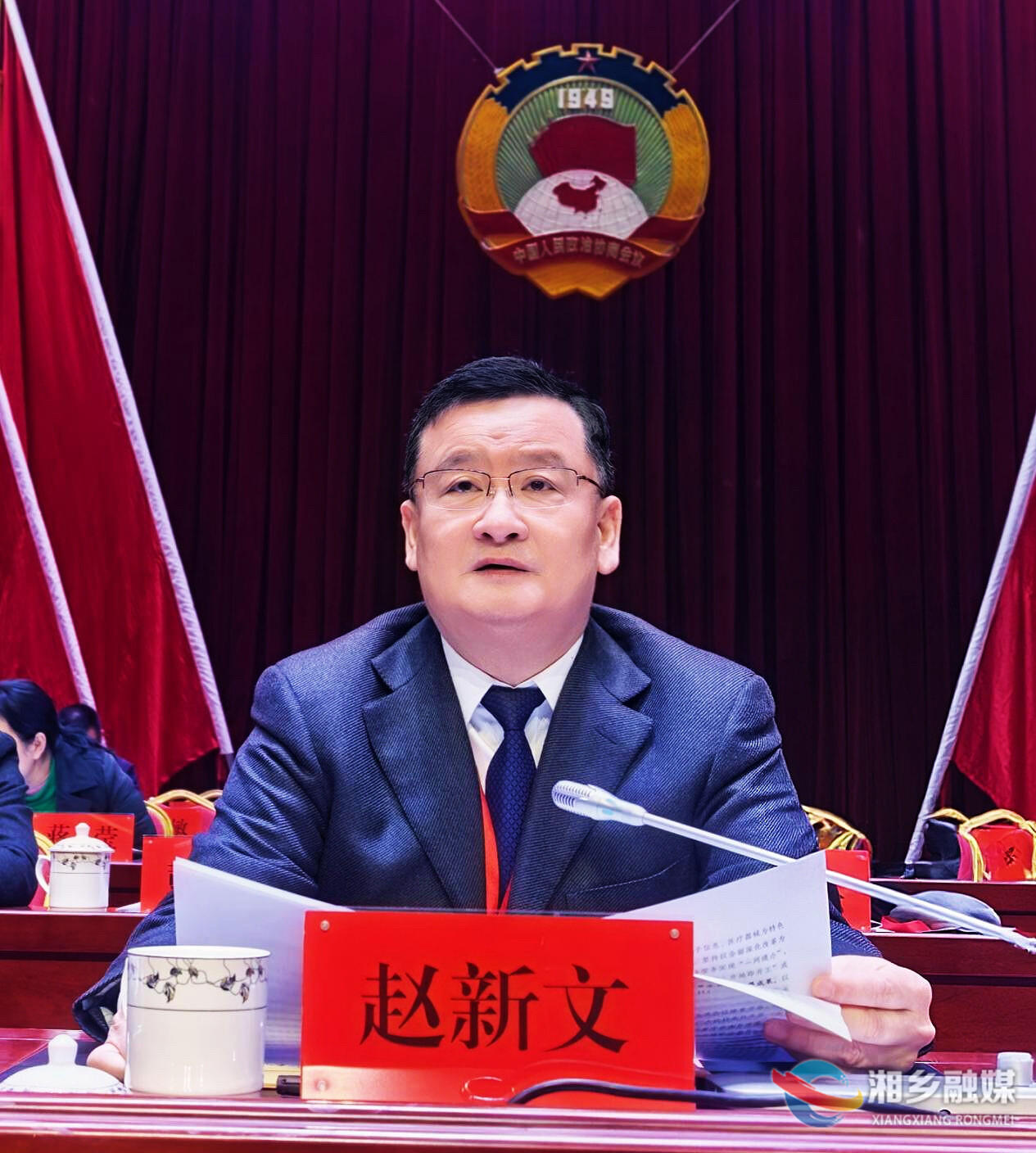 赵新文号召全体委员,更加紧密地团结在以习近平同志为核心的党中央周围,不断开创人民政协工作新局面,广泛凝聚“我爱湘乡我的家,大家都来建设他”的强大合力,为全方位推动湘乡经济社会高质量发展作出新的更大贡献!