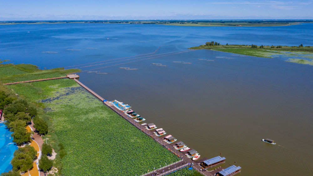 2020年7月20日拍摄的查干湖湿地。查干湖通过一系列工程性、生物性和管理性措施,不断扩大湿地面积,维护湿地生态平衡。截至2025年2月,查干湖实施湿地保护与恢复等项目24个,通过河道治理、引水灌溉、生态修复等工程,调配利用洪水资源和灌溉回归水,实现松花江—查干湖—嫩江水体连通和动态循环。