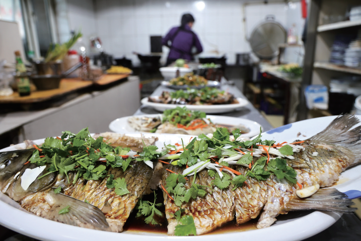 2025年11月22日,查干湖畔一家农家乐的厨师烹制查干湖鱼。当地通过政策引导与资源整合,打造“住民宿、品鱼宴、穿花袄”文旅新场景,推出“乡厨乡味”美食大赛、查小鱼音乐节、体育健身运动展演等活动,延展冰雪旅游产业链,助力乡村振兴。2025年5月1日,查干湖接待游客近7万人次,实现旅游综合收入6076.58万元,同比增长30%。