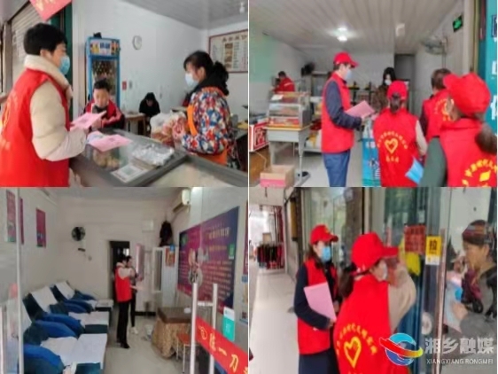 新湘乡客户端3月24日讯(通讯员:曾琤 毛坤)23日,市卫健局联合望春门办事处组织志愿者们走上街头,对责任街路段商传宣传防疫知识,指导商家开展防疫工作。