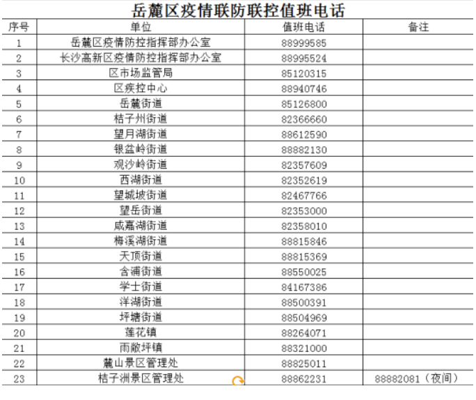 岳麓区新冠肺炎防控指挥部最新值班电话