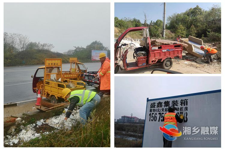环卫服务中心在机关院内、办公区域开展全面彻底的卫生大扫除,清理卫生死角。同时对城区主次干道卫生死角的生活垃圾、绿化带废弃物、废旧家具、“牛皮癣”、建筑装修垃圾以及车行道底子泥等进行整治清理。