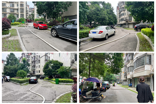 当消防车到达该小区时,只见路边悬挂了“消防车道 严禁占用”的告示牌,路面上也画着黄色网格线,表明此处为消防车通道严禁占用。然而,多辆私家车却挡在了消防通道上,消防车根本进不去。为了不耽误救援,现场指挥员立即指挥救援人员用水带连接消防车供水跑步至起火点进行灭火救援,导致救援行动受到阻碍,所幸事故没有造成人员伤亡。
