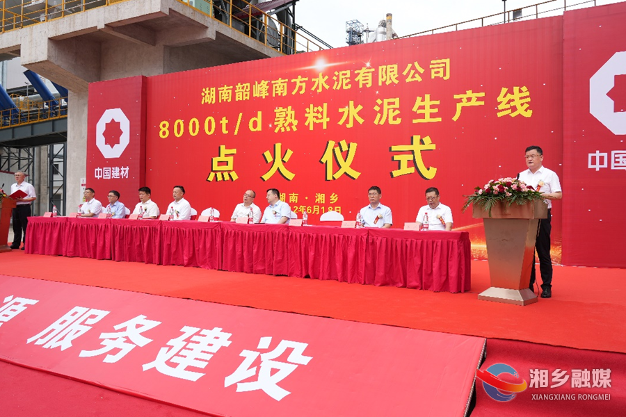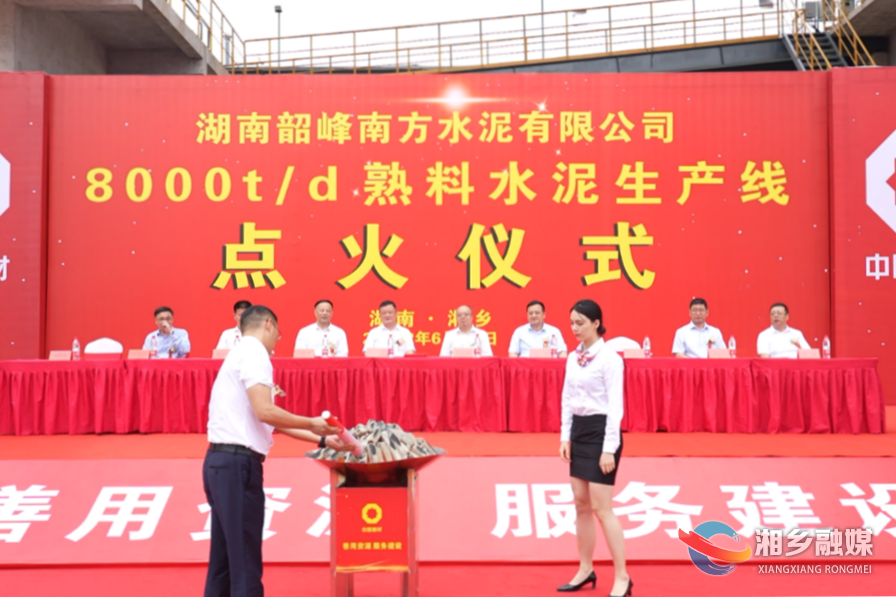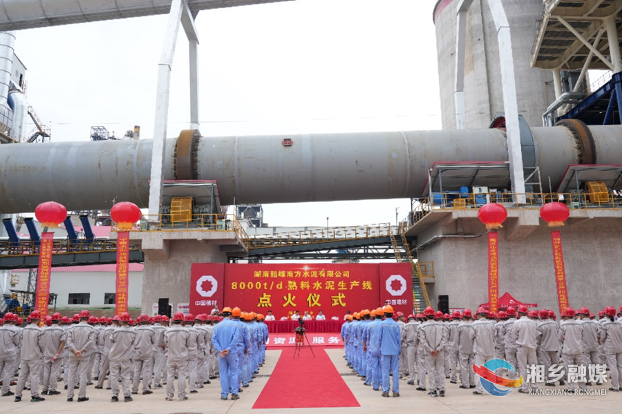 新湘乡客户端6月18日讯(湘乡融媒记者:潘永)18日,韶峰南方8000t/d熟料水泥生产线点火投产。中南水泥党委书记、董事长、总裁吕文斌,湘潭市人大常委会副主任、湘乡市委书记赵新文,市委副书记、市长郭勇出席点火仪式。