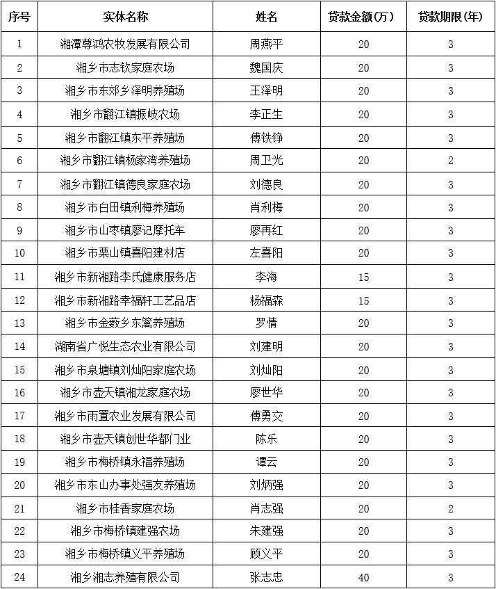 湘乡市2022年第二批创业担保贷款对象审核名单公示
