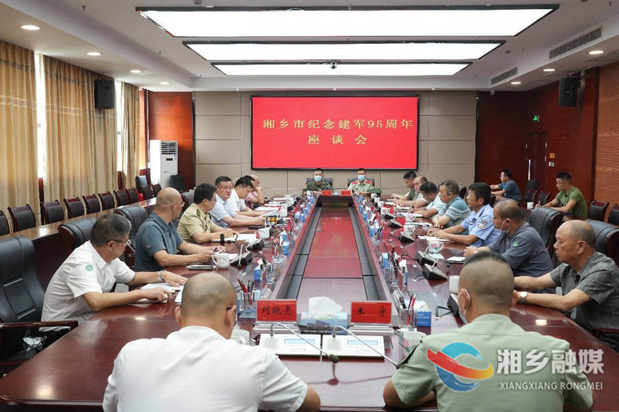 新湘乡客户端8月1日讯(湘乡融媒记者:潘永)8月1日,湘乡召开纪念建军95周年座谈会,共叙军民鱼水情谊,共谋军地建设发展。湘潭市人大常委会副主任、湘乡市委书记赵新文出席会议并强调,广大武警部队官兵、人武干部、退役军人要做到“四个带头”,投身“三大进位”工程,为推动湘乡经济社会高质量发展贡献力量。湘乡市委常委、市委办主任龚志光参加座谈会。