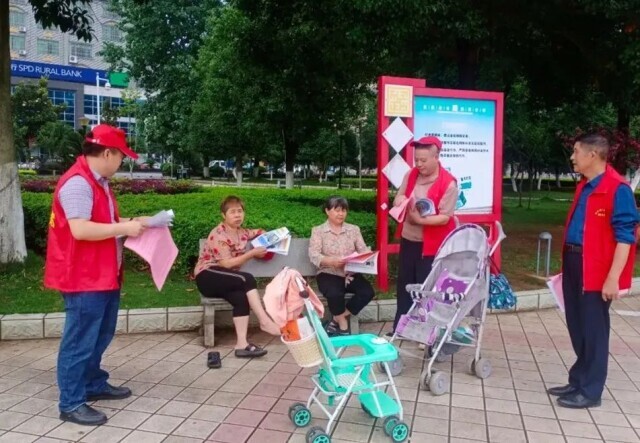 (图说:郴州政法“五老”深入公园宣传反诈常识。)
