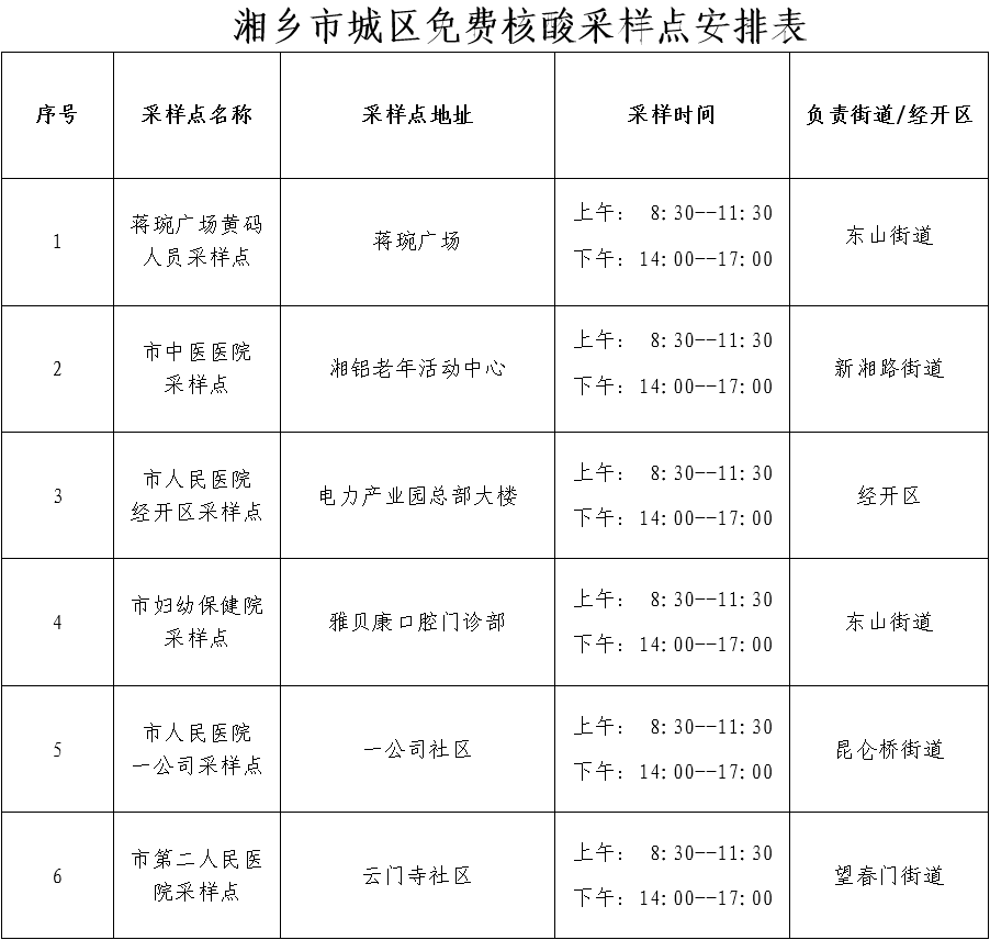 采样地点:湘乡市东山医院(湘乡市东山街道起凤路1118号),联系人:戴琪策,联系电话:13607326907;