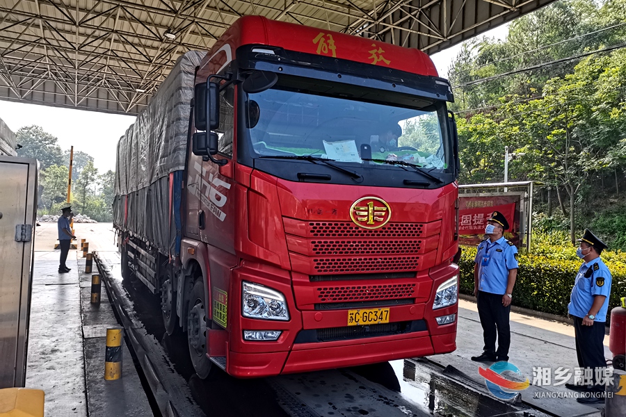 3日,记者来到湘乡市栗山超限超载检测站,站长洪亮正带领执法人员对进站车辆进行检测。