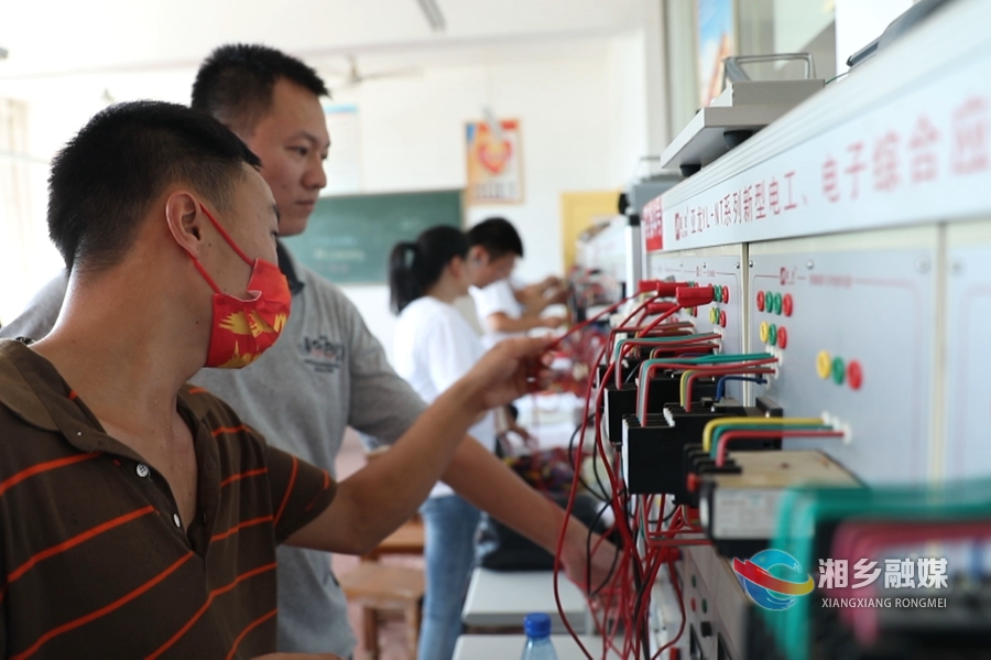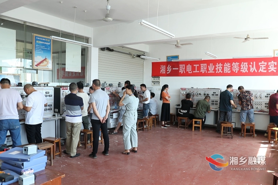 在湘乡市第一职业学校,电工培训班的50名学员正在进行结业考试,考试合格后,人社部门将会为他们颁发中级电工证。这是今年市人社局为电力建设企业员工举办的第五期培训班。