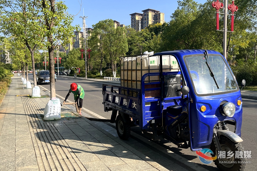 为保证城区绿化苗木的健康生长,提高抗旱效率,湘乡市城市管理局园林绿化服务中心精准施策,采用喷灌、滴灌、人工、洒水车和三轮车搭载储水罐相结合的方式,对城区植物进行全面浇灌。此外,为避开高温蒸发时段和车流人流高峰期,该中心重点加大早间、夜间浇灌力度,不间断、拉网式对城区内的绿植进行灌溉,全力以赴打好抗旱保绿攻坚战。截至目前,平均每日出动100余名园林工人、洒水车10台、三轮车10台,对广场、道路绿化带、沿河风光带、行道树及经开区共100万平方米绿化进行抗旱保绿。