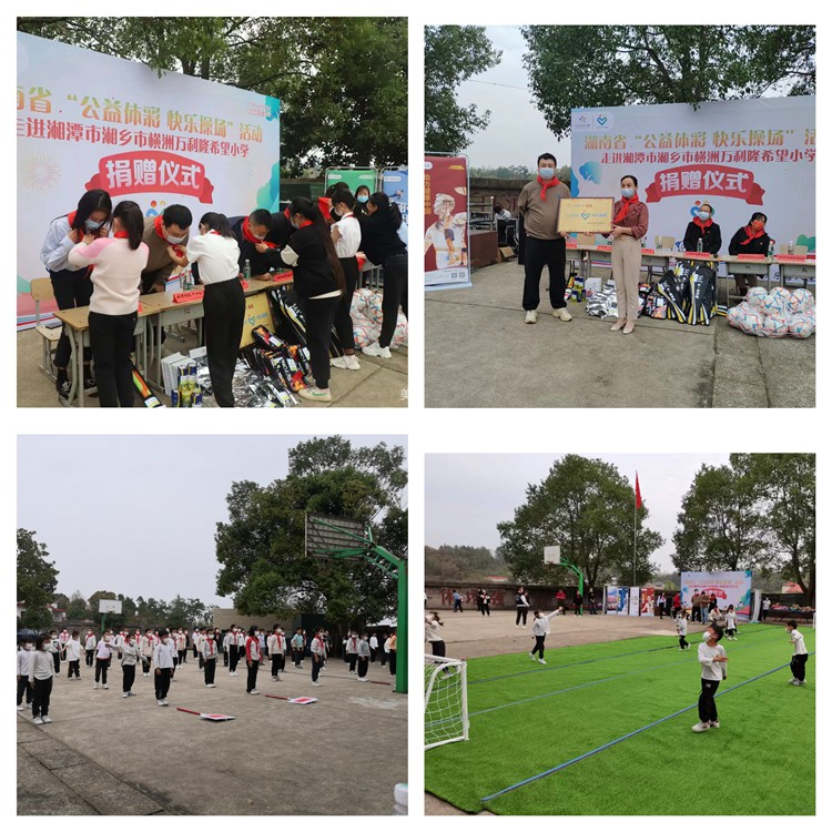 据了解,此次比赛是为答谢湖南体彩、湘潭体彩给学校捐赠体育器材而举办的。11月21日,2022年湖南“公益体彩 快乐操场”活动走进湘乡市横洲万利隆希望小学,为学校捐赠了人造草坪小型足球场、足球、乒乓球拍、羽毛球拍、跳绳等体育器材和用品。