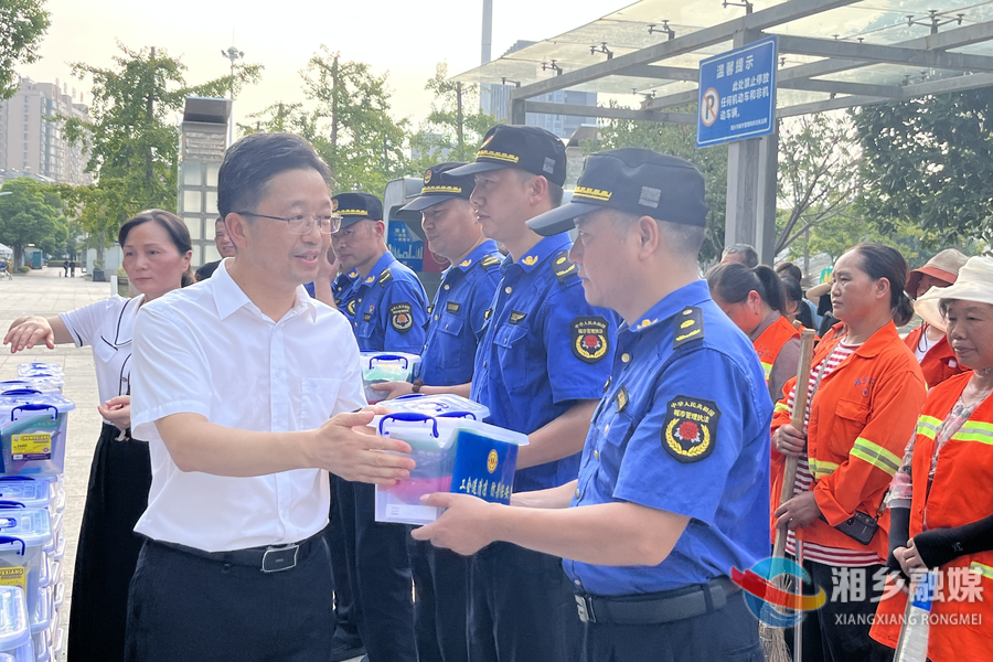 中国湘乡网8月9日讯(湘乡融媒记者:吴笛 实习记者:周忱)连日来,湘乡市委副书记、政法委书记谢岸烨等市领导分别带队开展“送清凉”慰问活动,为高温下坚守一线的职工送去防暑物资和暖心问候。
